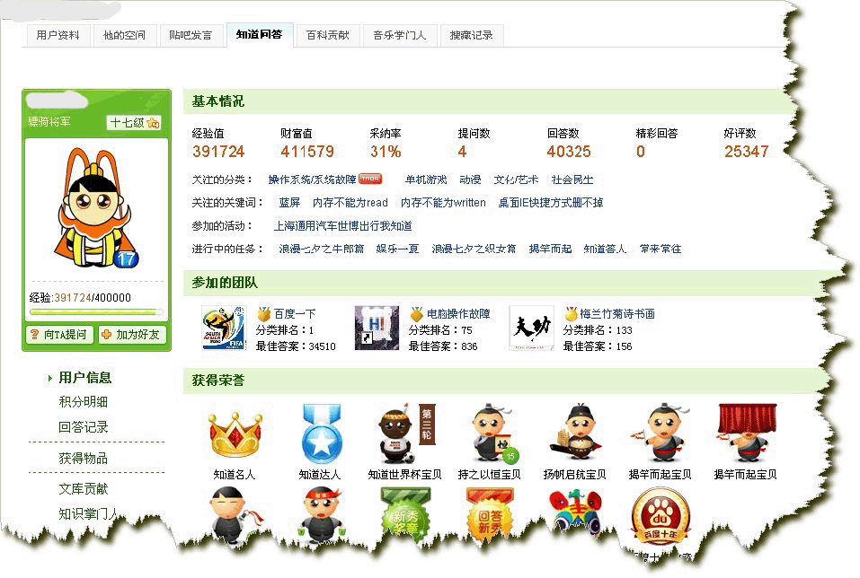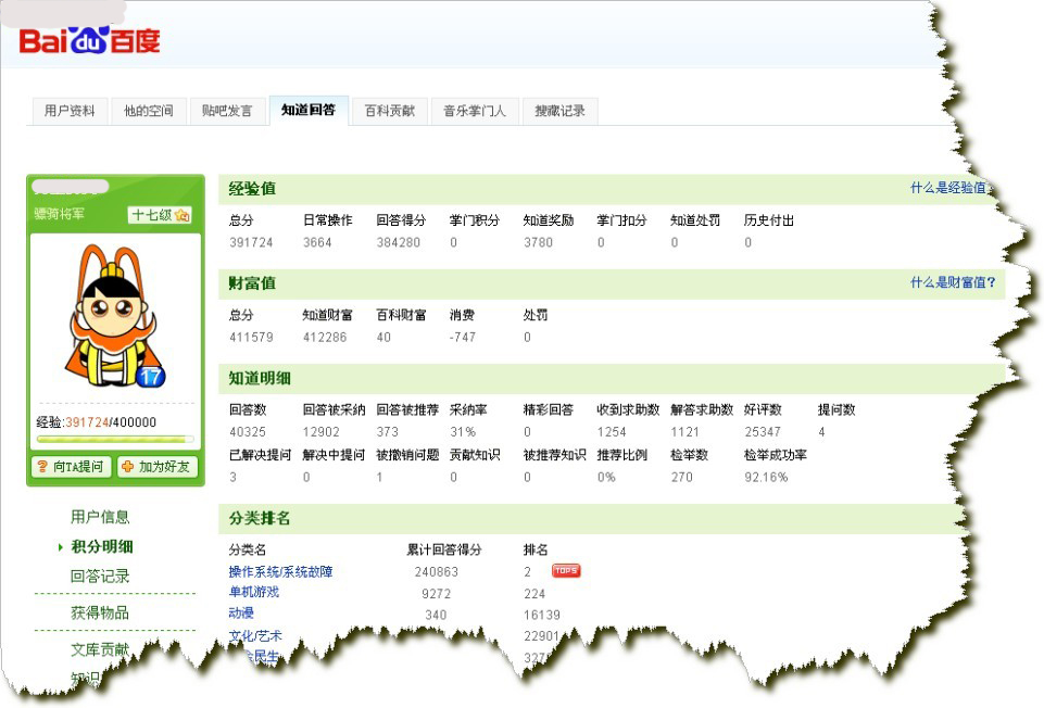 (“知識掌門人”的經(jīng)驗值和財富值會計入知道的總經(jīng)驗值、財富值中,但掌門人級別會按照用戶在“知識掌門人”平臺上活動獲得的經(jīng)驗值劃分。)